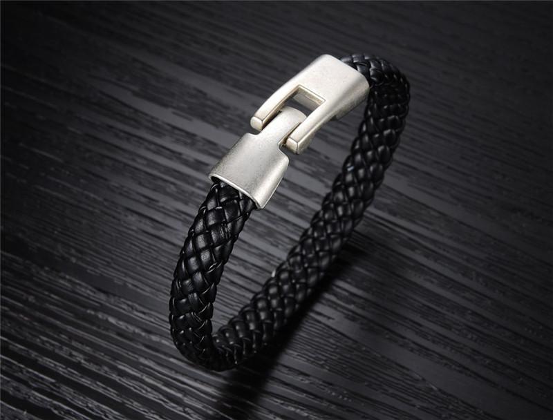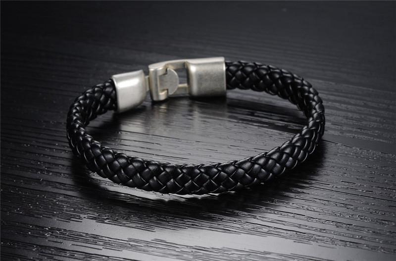 Be effortlessly stylish with this simple black weaved knitted wristband made of genuie leather. Wear this with casual attire or even as an everyday item to spruce up your outfit.