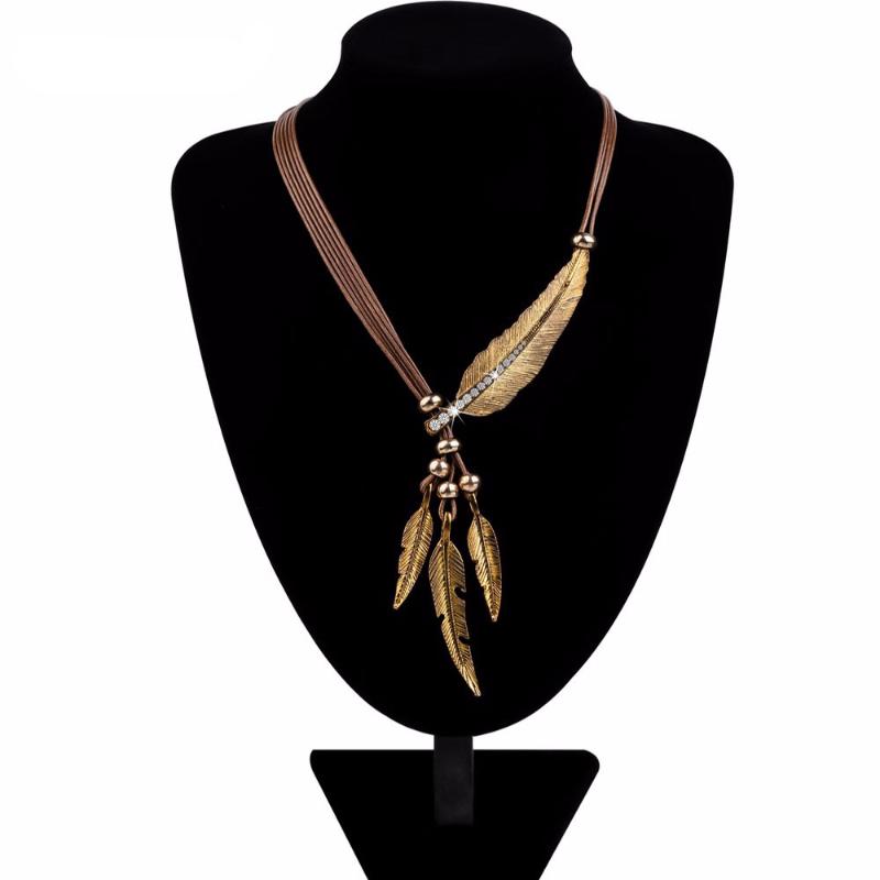 Necklace Alloy Feather Pendant Rope Chain Necklaces